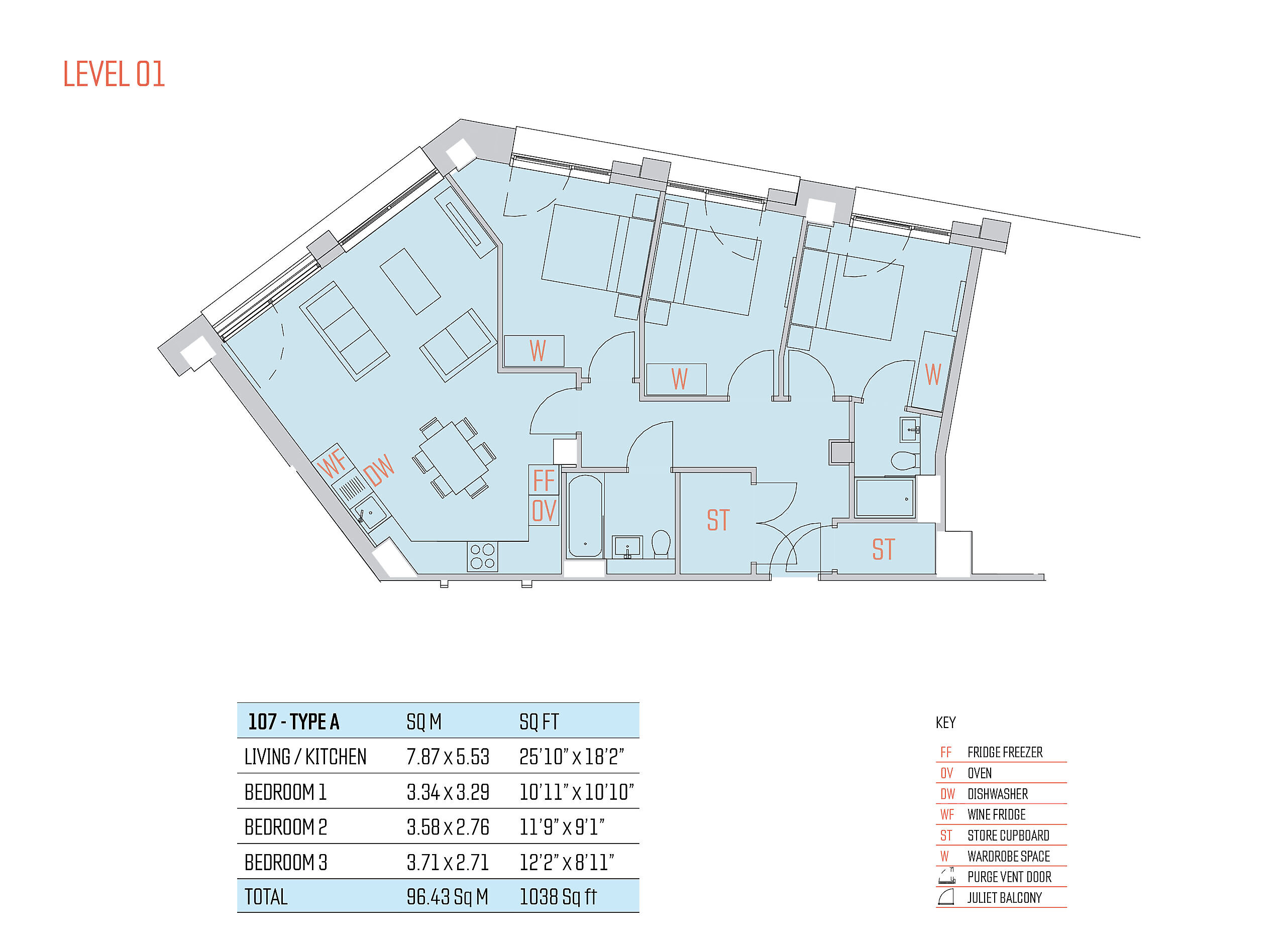 *300mm wine cooler (all 1 bedroom apartments), 600mm wine cooler (2 & 3 bedroom apartments).
