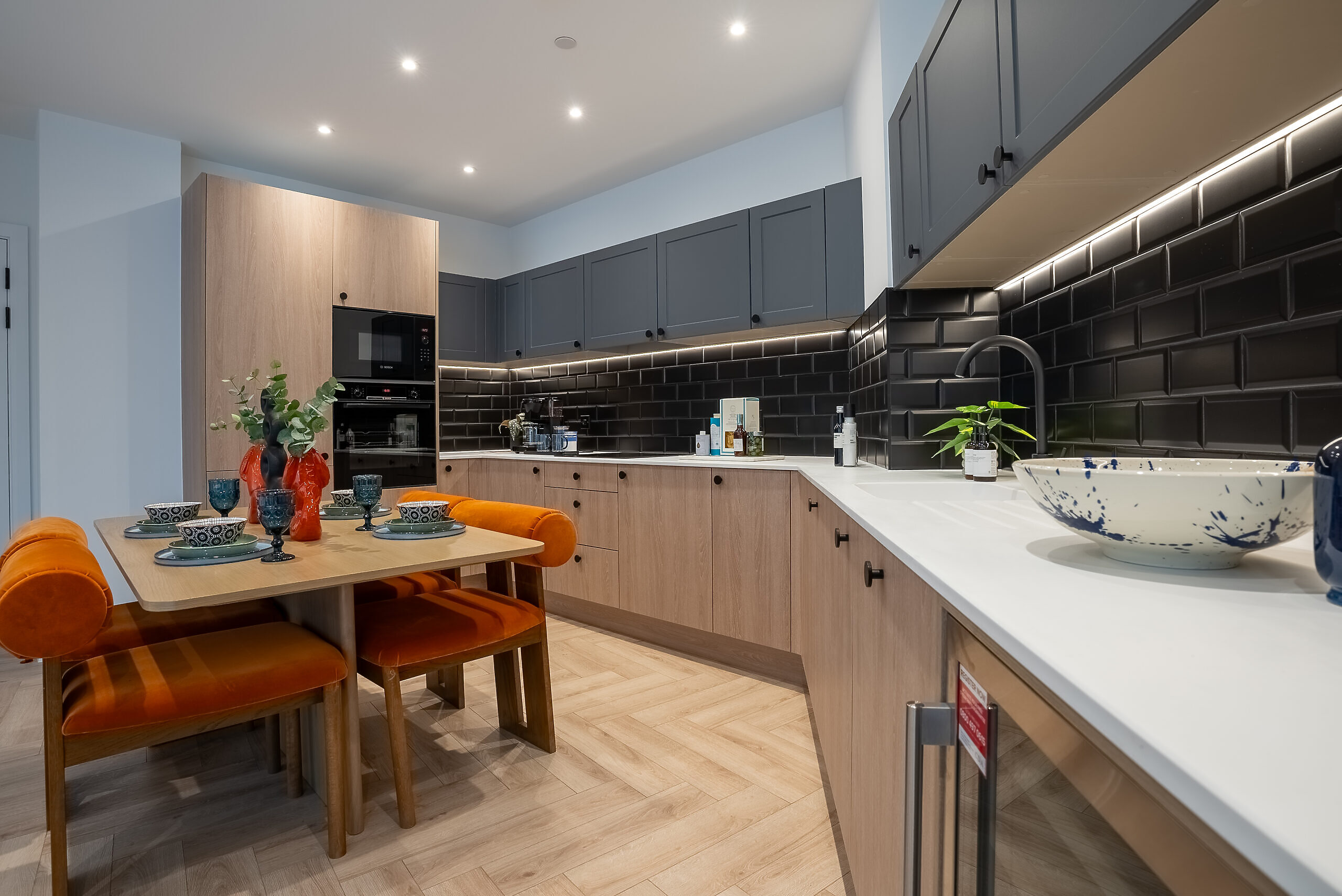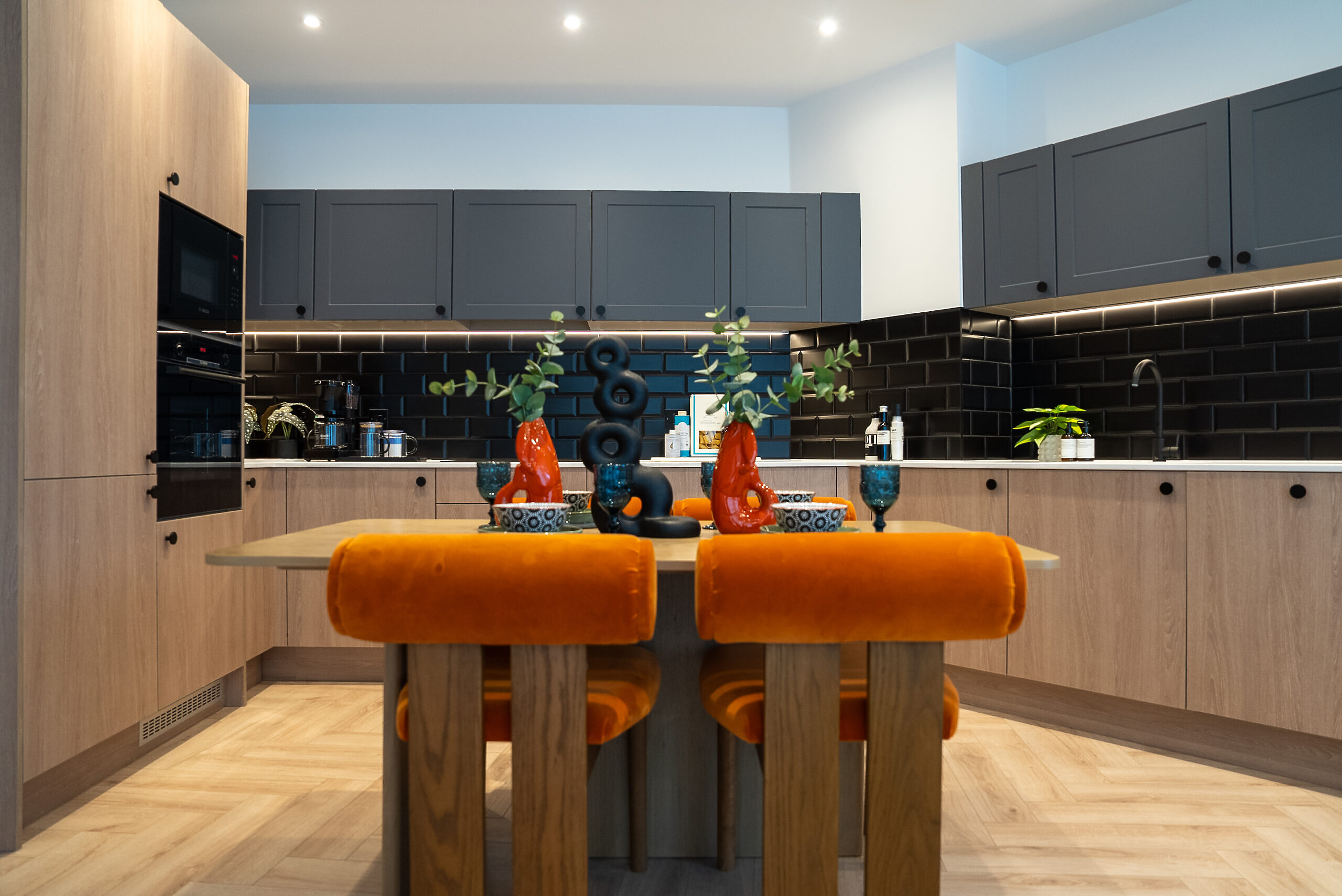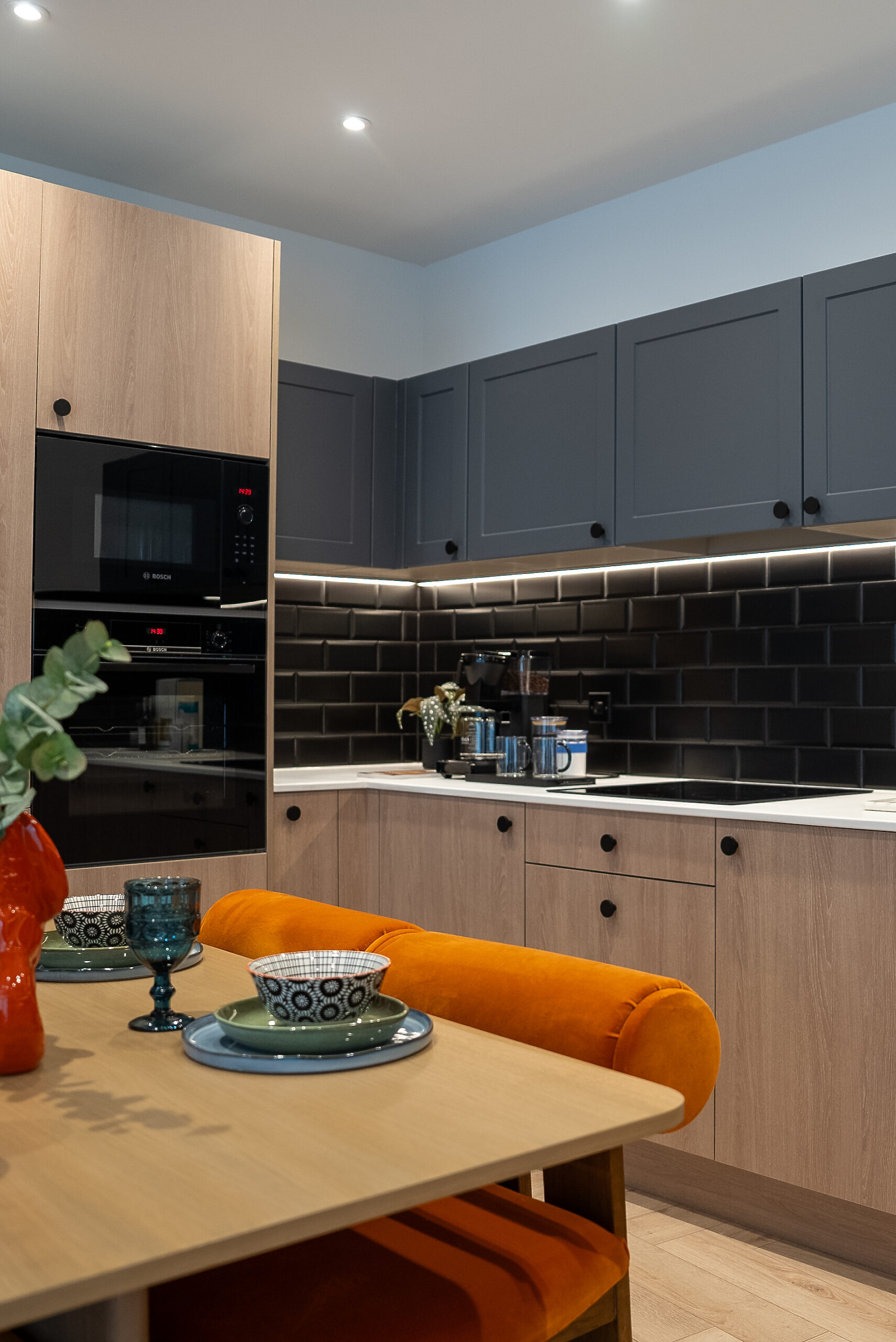 - Black splashback metro tiles