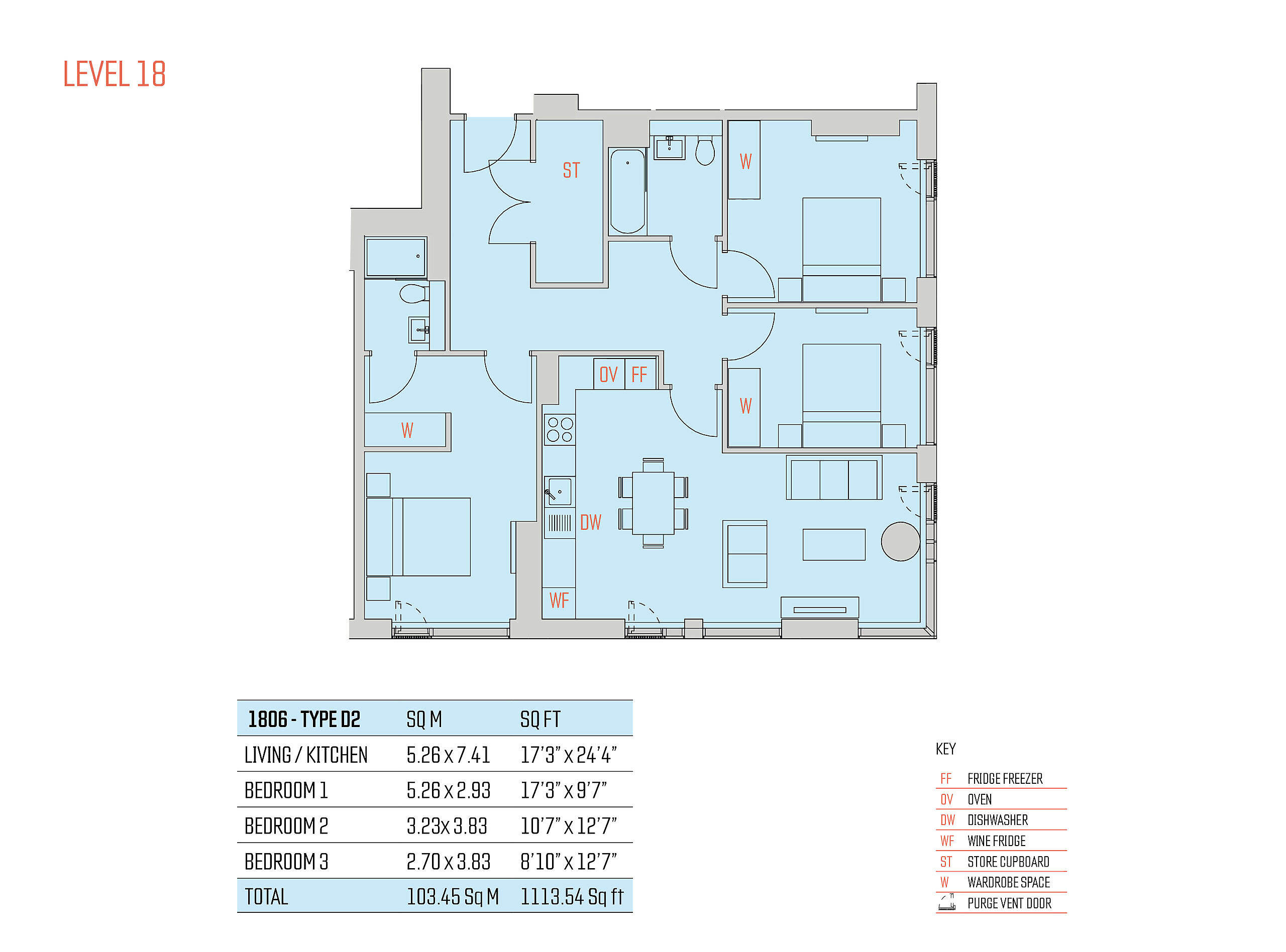 *300mm wine cooler (all 1 bedroom apartments), 600mm wine cooler (2 & 3 bedroom apartments).