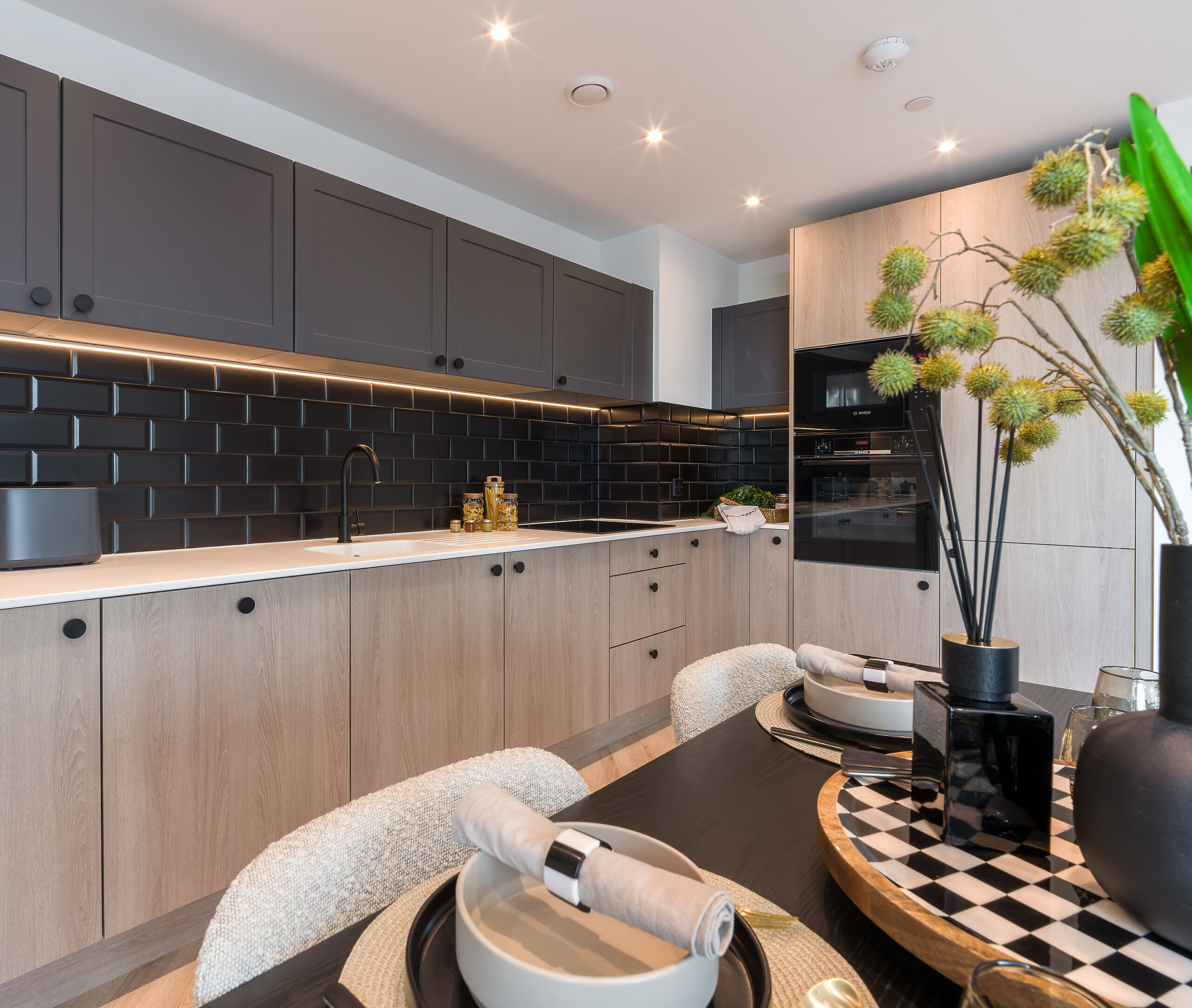 - Integrated Bosch induction hob, oven, microwave and extractor fan