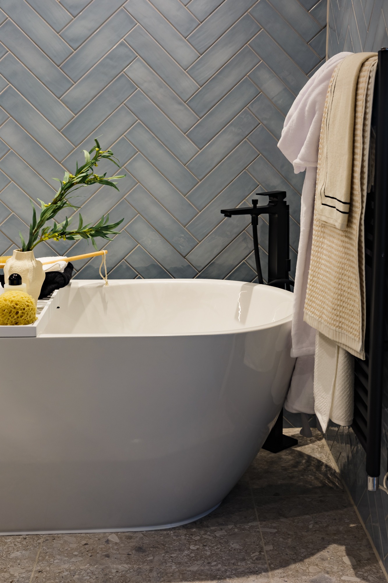 - Black ladder towel rail to bathrooms and en-suites