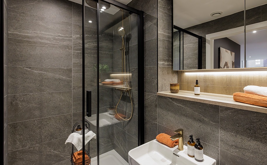 • Fully tiled en-suite in Artic Grigio Natural matte
