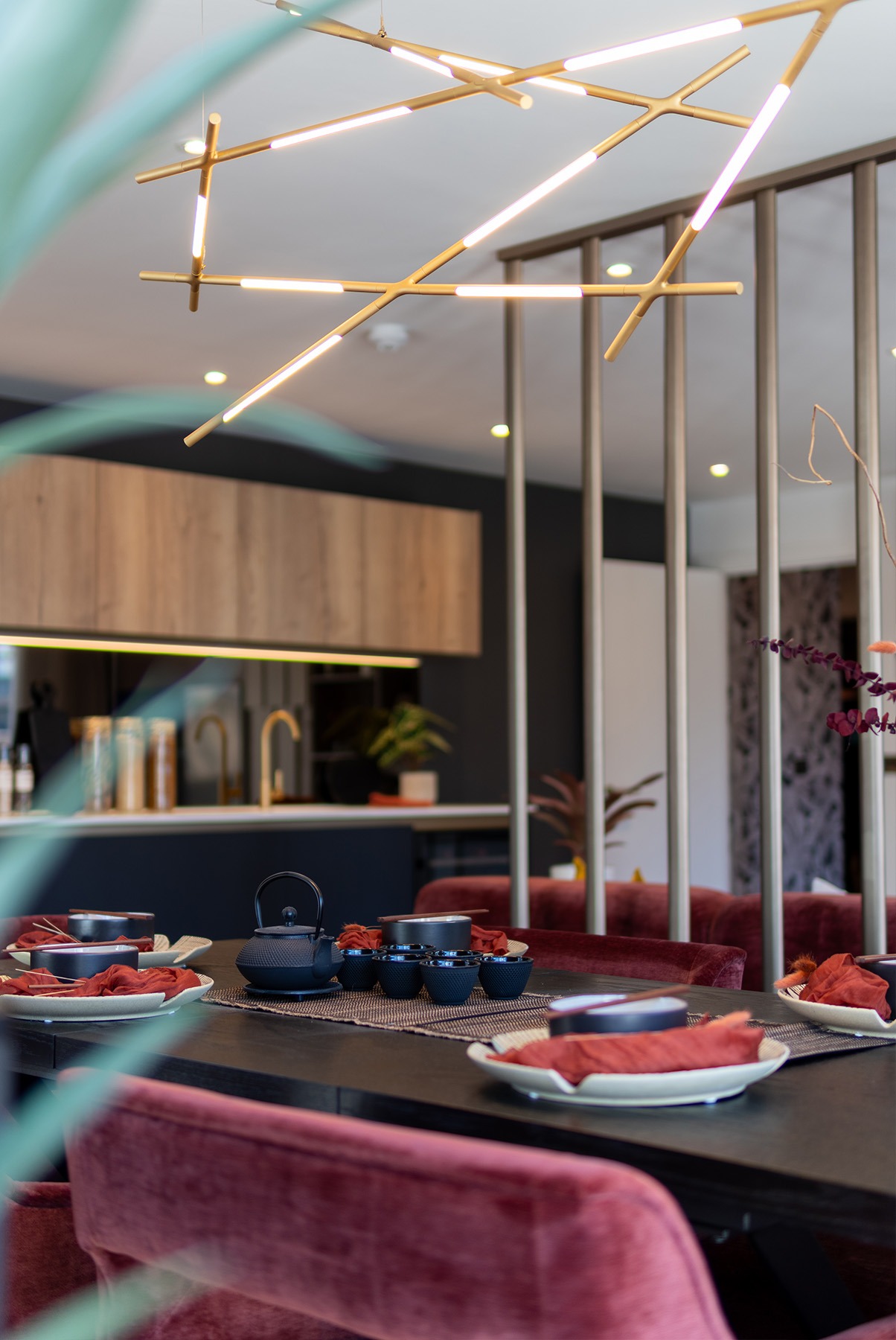 • Bespoke kitchen cabinets in matte black & oak effect