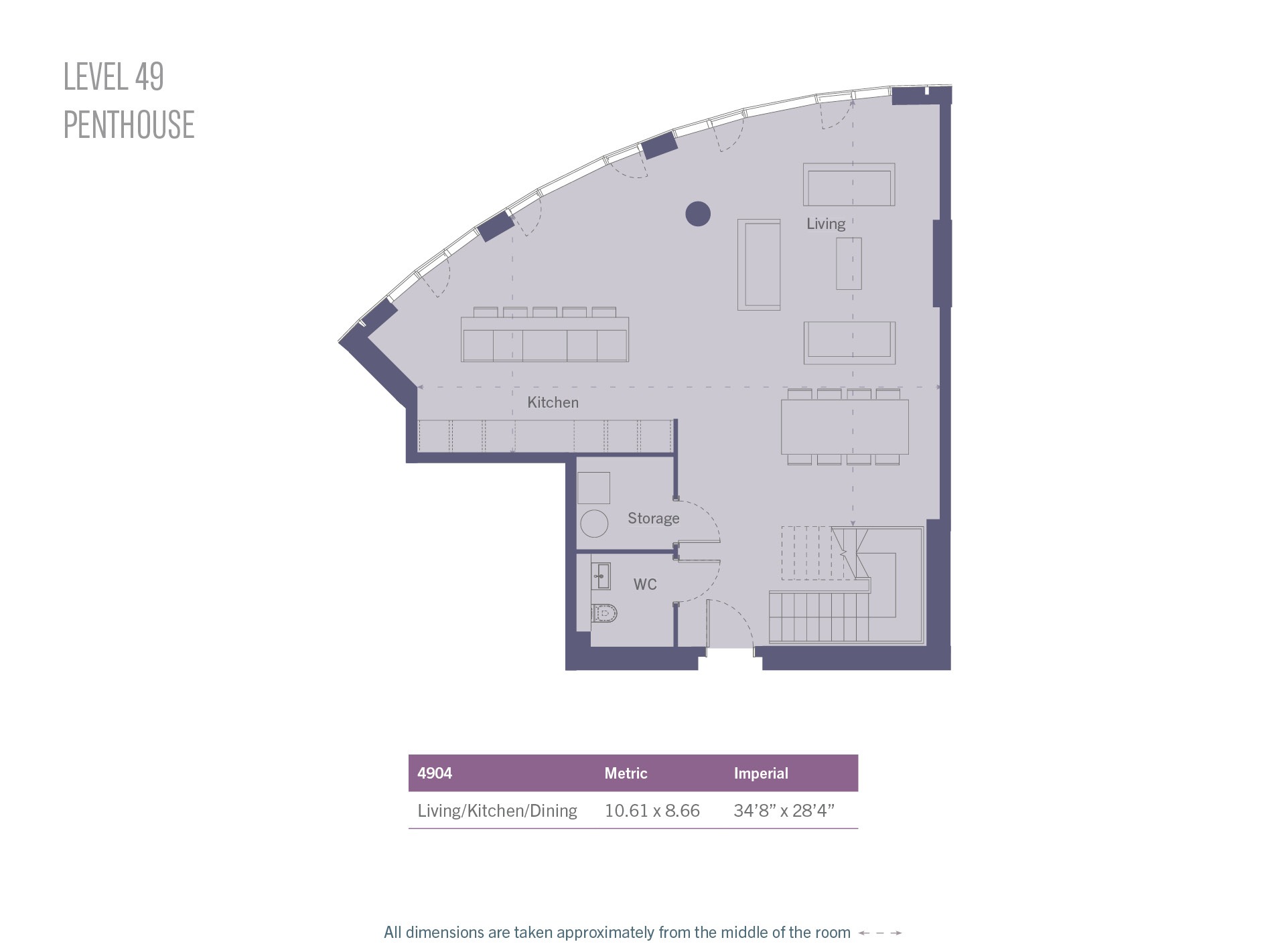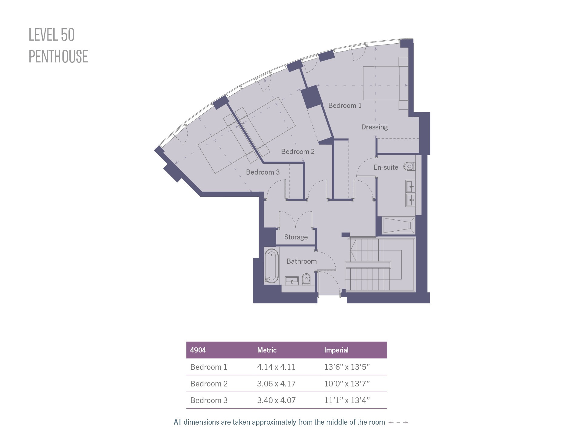 - Four lifts provide access from the ground level up to and including level 49, whilst a separate lift operates from ground level to the basement where the car park and cycle store are located.