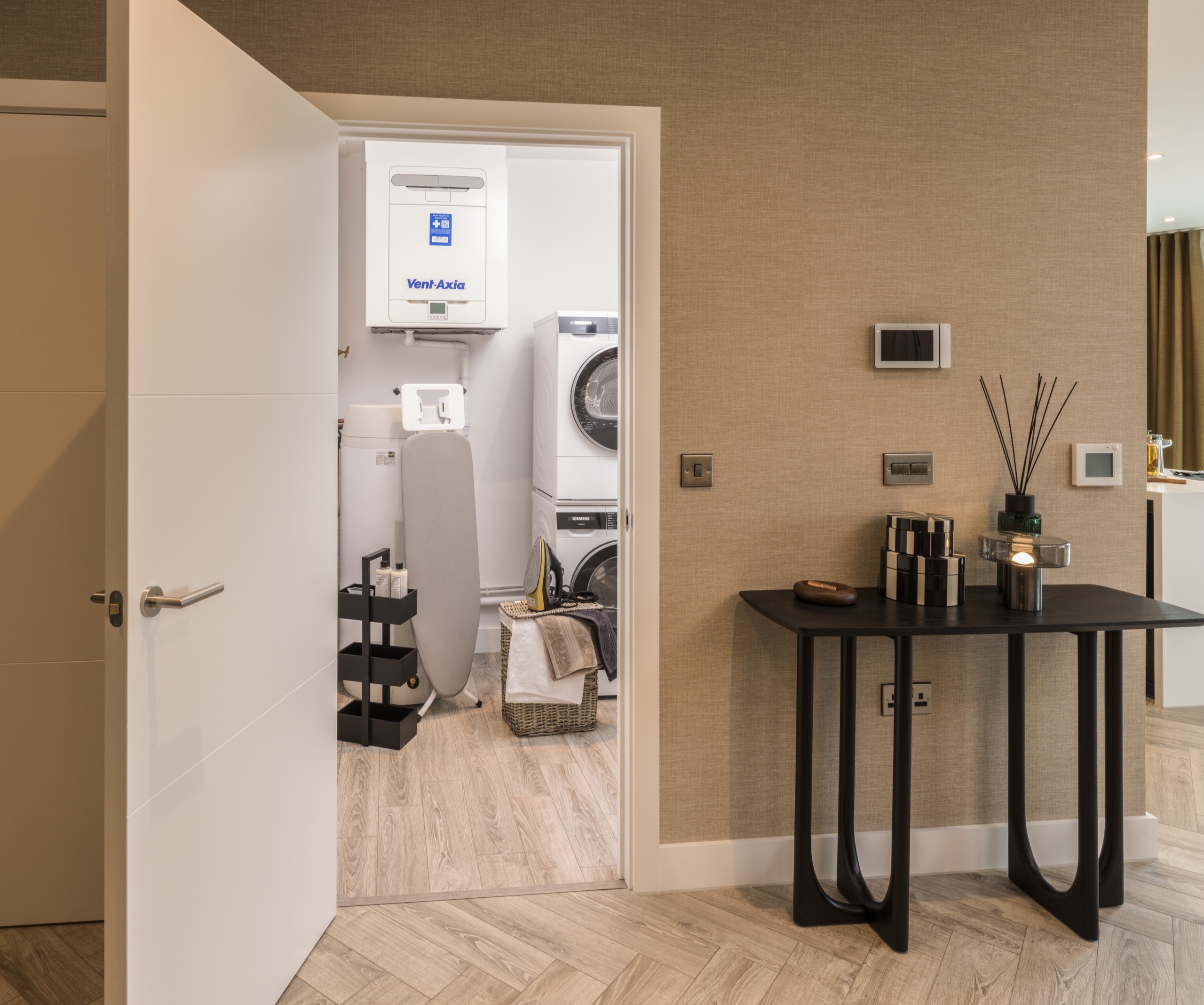 - Slim-line electric panel heaters with central timer (in hallway)