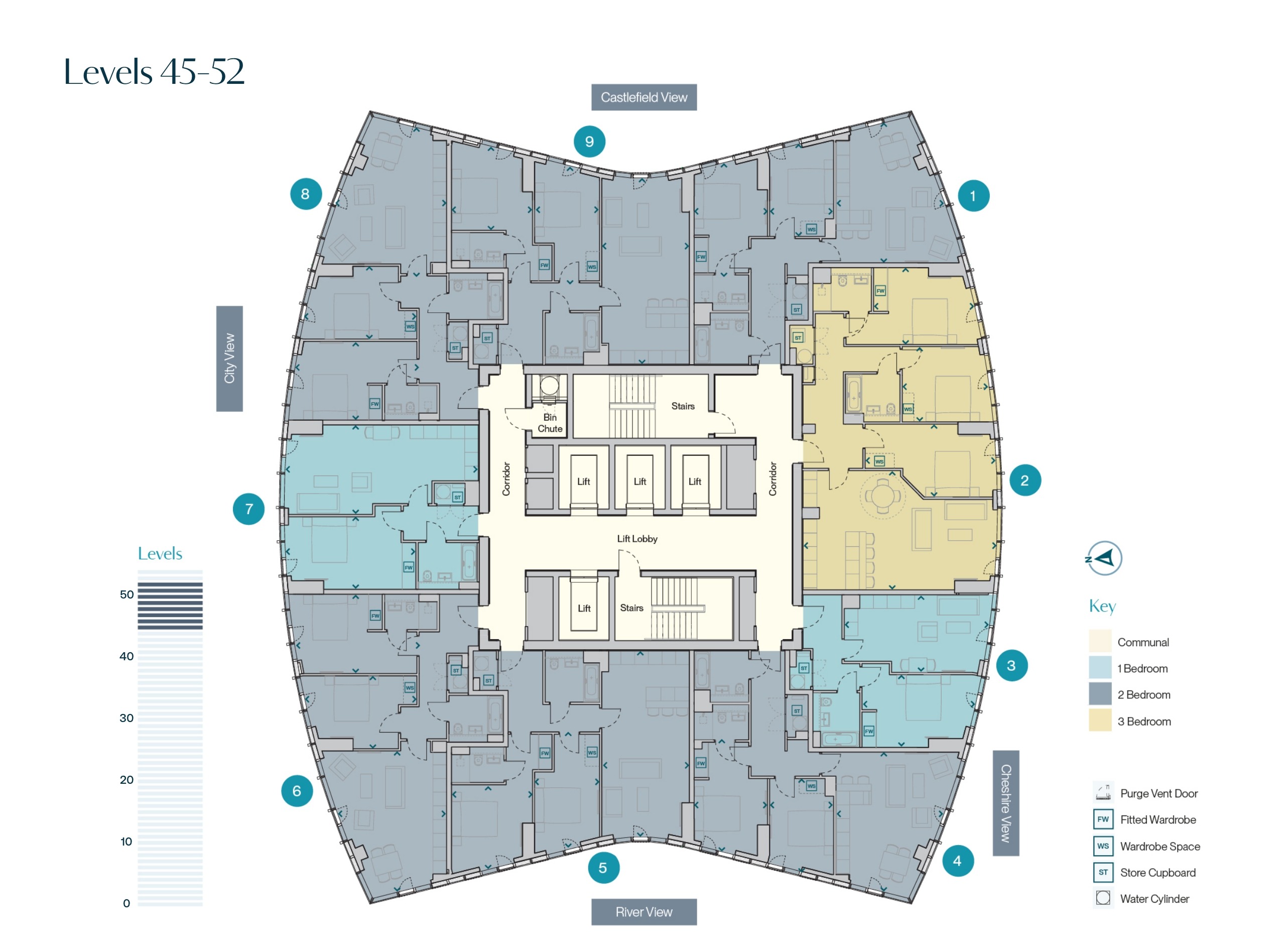 - 4 lifts provide access from ground up to and including level 53, whilst a separate lift operates from ground level to the basement where the car park‡ (including EV charging points‡‡) cycle store, and Urban Tails dog spa are located.