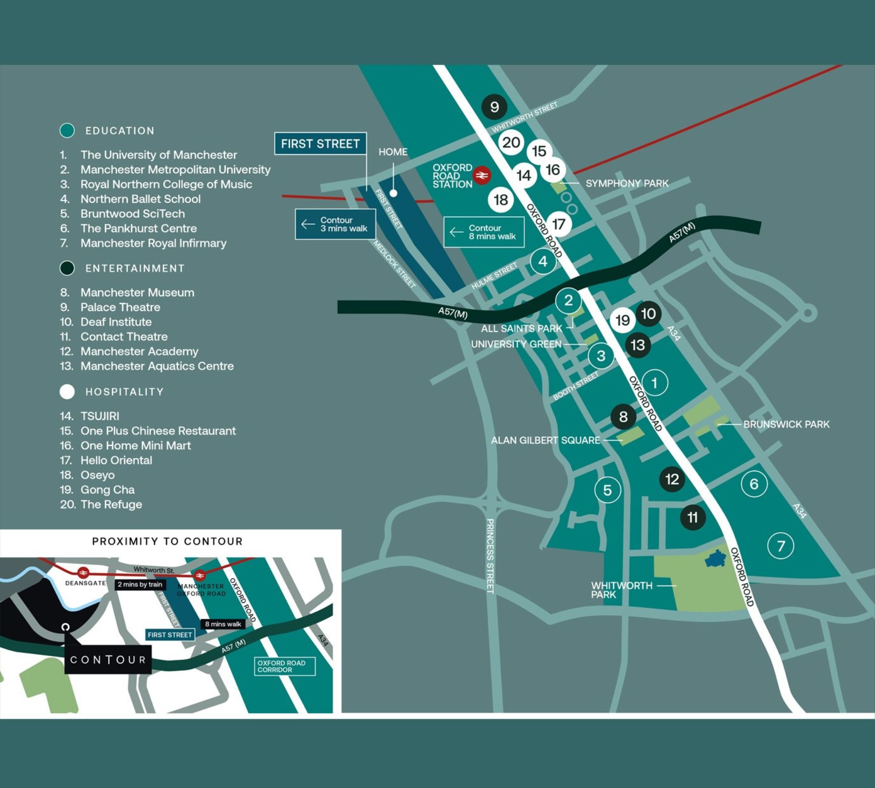 Located just minutes away from the Oxford Road Corridor and Deansgate-Castlefield Metrolink Station, Contour part of New Jackson is ideally positioned to appeal to academics and professionals alike.