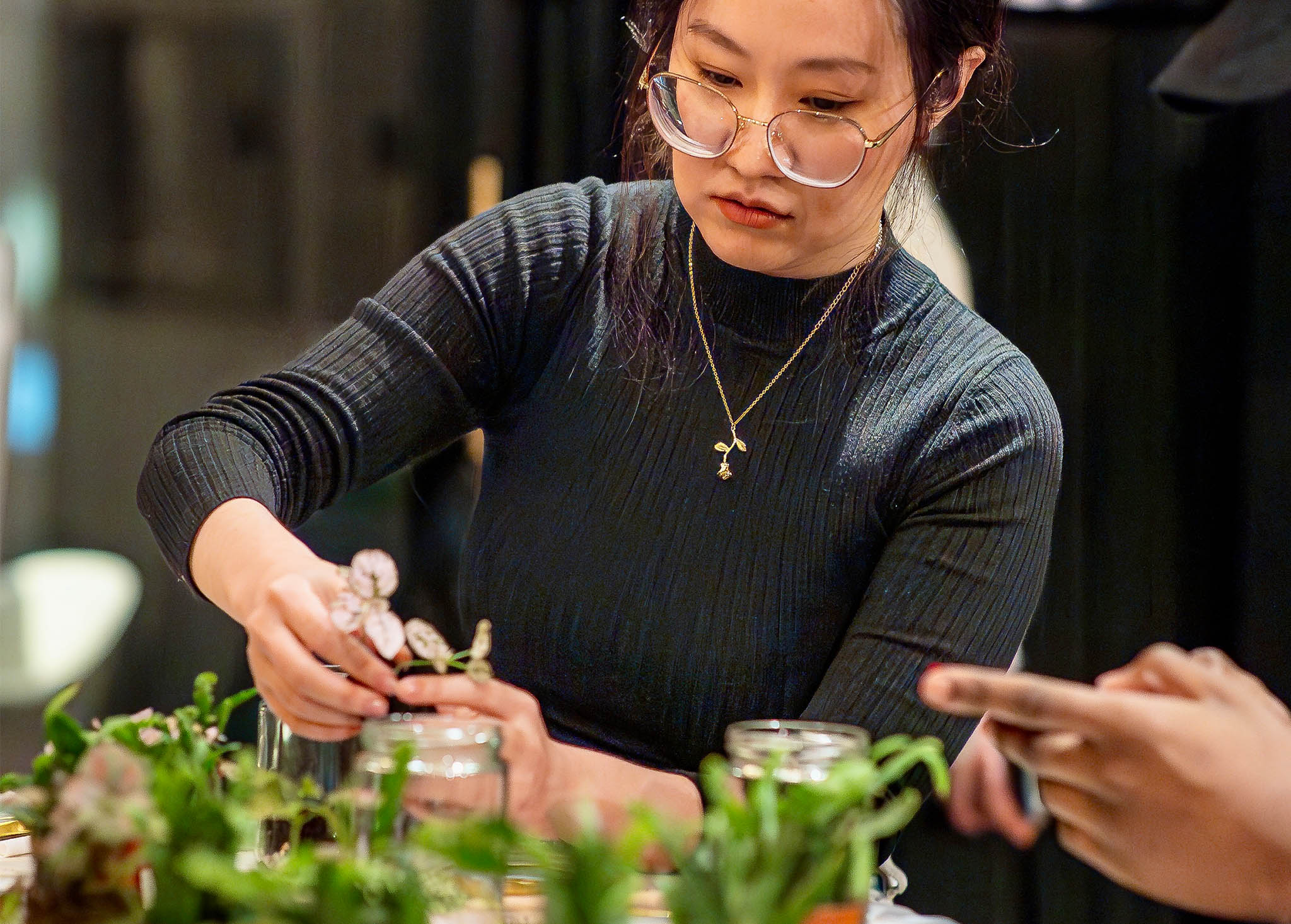 In an evening focused on mindfulness, relaxation and socialising, residents were invited to drop in to one of our artist-led craft workshops to create miniature terrariums, mini dried flower bouquets and eco-resin plant pots, while getting to know their neighbours.